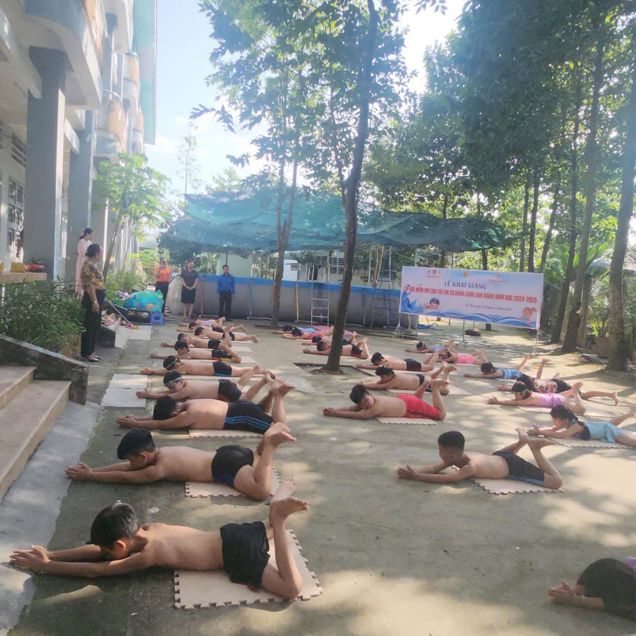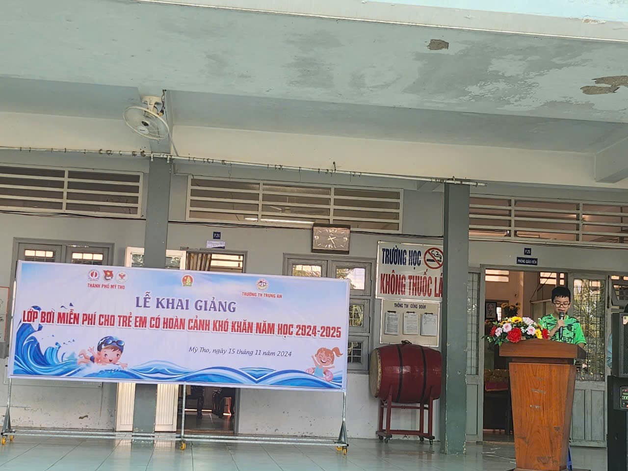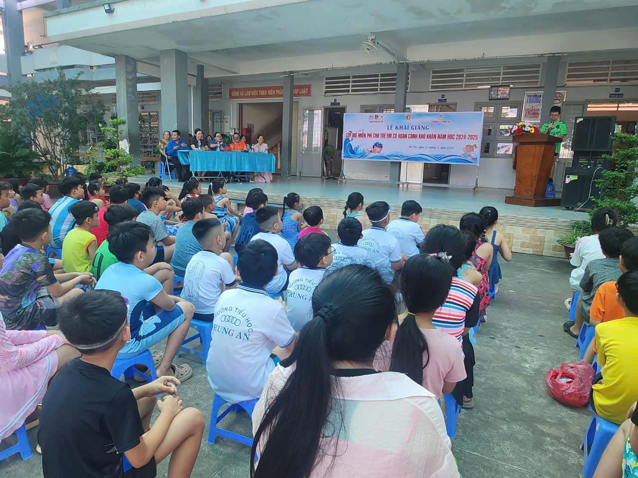 Tiếp tục thực hiện Đề án “Phổ cập bơi, phòng chống đuối nước cho học sinh tiểu học trên địa bàn thành phố Mỹ Tho giai đoạn 2020 – 2025” trong năm học 2024 – 2025. Ngày 15/11/2024, Đoàn Thanh niên, Hội đồng Đội thành phố phối hợp cùng Phòng Giáo dục và Đào tạo, Trung tâm Văn hóa – Thể thao và Du lịch thành phố Mỹ Tho và Ban Giám hiệu Trường Tiểu học Trung An, Liên đội Trường Tiểu học Trung An tổ chức Lễ khai giảng lớp bơi miễn phí dành cho trẻ em có hoàn cảnh khó khăn năm học 2024 - 2025 với sự tham dự của đại diện 40/90 học sinh có hoàn cảnh khó khăn trên địa bàn thành phố. Ngoài ra trong chương trình, Ban Tổ chức đã trao 15 phần quà tặng cho các bạn học sinh có hoàn cảnh khó khăn của trường Tiểu học Trung An. Sau Lễ khai giảng, các em học sinh được giáo viên hướng dẫn và thực hành những kỹ năng bơi lội cơ bản như: Khởi động trước khi xuống nước; tập nhảy; tập thở đúng cách dưới nước; các kỹ thuật bơi thông dụng; kỹ năng phòng tránh tai nạn đuối nước, kỹ năng an toàn dưới nước; cách xử lý khi khi gặp các tình huống nguy hiểm, bất ngờ dưới nước,…